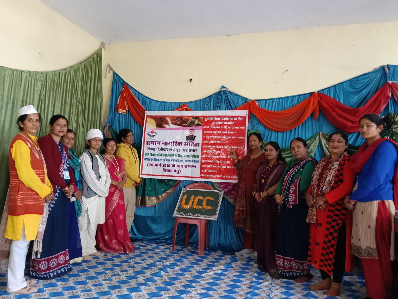 कार्यक्रम में U. C. C. के नुक्कड़ नाटक द्वारा आंगनबाड़ी कार्यकर्ता द्वारा प्रस्तुति कर नागरिकों को संदेश देने वह क्षेत्रीय सुपरवाइजर मीना आर्य द्वारा हल्दुचौड़ की जनता को U. C. C. की जानकारी दी गई तथा जनवरी 2020 के पश्चात सभी विवाहित जोड़ों को U. C. C. सेंटर या नगर निगम के विवाह पंजीकरण निशुल्क करवाने की वह इसमें लगने वाले दस्तावेजों के बारे में विस्तार में बताया तथा कमल भंडारी व दीप चंदोला वह रुक्मणी जी द्वारा कार्यक्रम की सराहना करी गई तथा U. C. C. के निशुल्क कैंप गांव में लगवाने वह इसमें सहयोग करने हेतु भी कहा गया अंत में सभी लोगों ने बाल विवाह उन्मूलन हेतु शपथ भी ली गई.