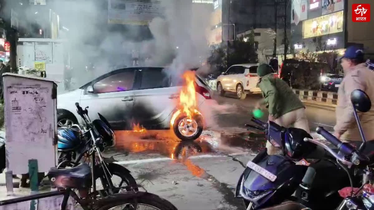 हरिद्वार: लोहड़ी के दौरान कार में लगी आग, 20 मिनट बाद पहुंची फायर ब्रिगेड, ट्रैफिक पुलिस ने दिखाया साहस