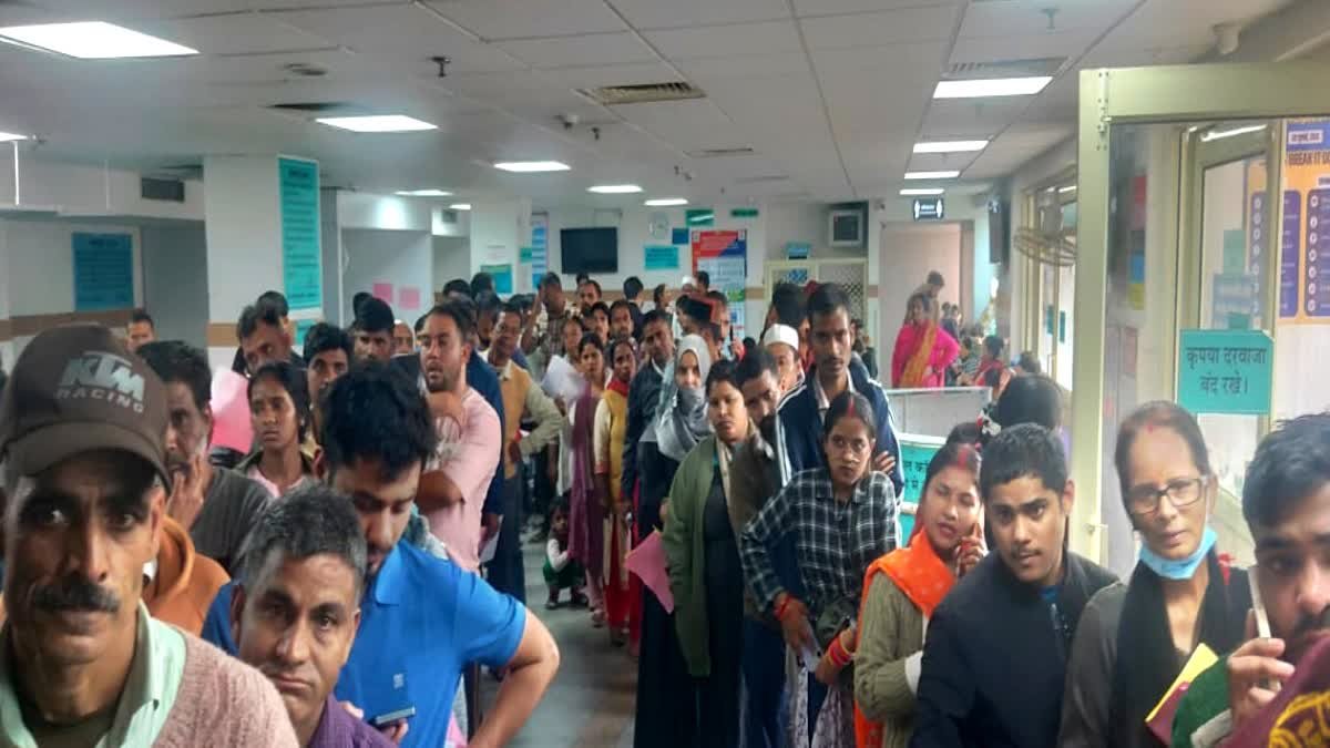 देहरादून: दून अस्पताल में मरीजों की भीड़ ने स्वास्थ्य व्यवस्थाओं की कलई खोलकर रख दी. केवल ओपीडी में ही नहीं बल्कि इमरजेंसी में भी लोगों की लंबी-लंबी लाइन देखने को मिली. दून अस्पताल में बिलिंग काउंटर का चार्ज संभाल ही रचना भंडारी ने बताया कि सोमवार को 1776 लोगों का ओपीडी कार्ड बना था जो हर दिन के औसत के अनुसार सामान्य संख्या है, लेकिन कार्ड बनाने और बिलिंग की रफ्तार धीमी होने की वजह से भीड़ ज्यादा लगी.