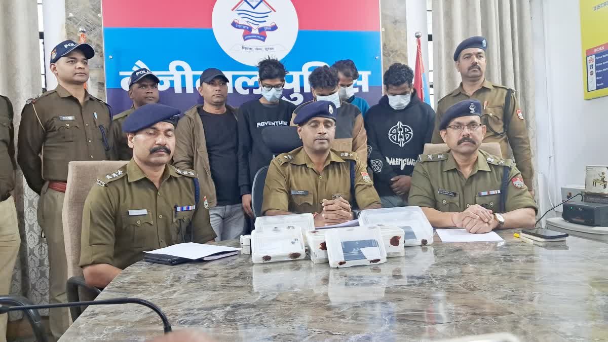 हरियाणा नंबर की कार में बैठे थे साइबर ठग: दरअसल, नैनीताल पुलिस ने अंतरराज्यीय साइबर ठगी करने वाले चार आरोपियों को दबोचा है. नैनीताल एसएसपी मंजूनाथ टीसी ने बताया कि 15 नवंबर 2025 को तल्लीताल थाना पुलिस रात के समय चेकिंग अभियान चला रही थी. तभी भेड़ियापखाण मोड पर दोगांव के पास एक कार संख्या HR 98 P 1642 आती दिखाई दी. जिसे रोक कर चेक किया गया. चेक करने पर कार में चार संदिग्ध युवक बैठे नजर आए.