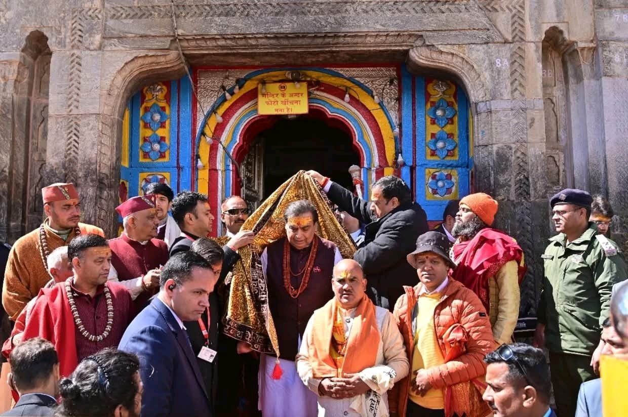 मंदिर समिति ने उन्हें पारंपरिक पहाड़ी टोपी भेंट कर तथा तुलसी माला पहनाकर सम्मानित किया। इस दौरान उन्होंने माननीय मुख्यमंत्री पुष्कर सिंह धामी के नेतृत्व में हो रहे चारधाम यात्रा प्रबंधन, तीर्थयात्रियों की सुविधाओं और राज्य में जारी विकास कार्यों की सराहना की। अंबानी परिवार की भगवान बद्रीविशाल और बाबा केदारनाथ के प्रति हमेशा से गहरी आस्था और अटूट श्रद्धा रही है। हर वर्ष परिवार के सदस्य इन दोनों पवित्र धामों के दर्शन हेतु पहुंचते हैं और विशेष पूजन के साथ उदारतापूर्वक दान भी करते हैं। इस वर्ष भी अपनी परंपरा को आगे बढ़ाते हुए मुकेश अंबानी ने श्री बदरीनाथ-केदारनाथ मंदिर समिति को ₹10 करोड़ की दान राशि प्रदान की है, जो पिछले वर्षों की अपेक्षा दोगुनी है। यह राशि धामों के सौंदर्यीकरण, श्रद्धालु सुविधाओं के विस्तार तथा धार्मिक धरोहरों के संरक्षण में उपयोग की जाएगी।