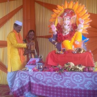 इससे पहले पंडित मुकेश पाठक ने वैदिक मंत्रोचार के साथ गणेश प्रतिमा की प्राण प्रतिष्ठा की मुख्य यजमान धर्मानंद खोलिया एवं श्रीमती गीता खोलिया द्वारा धार्मिक अनुष्ठान किया गया रात्रि में नन्हे मुन्ने कलाकारों ने गणेश भगवान की सुंदर-सुंदर कार्यक्रम प्रस्तुत किया। भजन संध्या में मोना चोपड़ा तबला वादक मुस्कान चोपड़ा हारमोनियम किरण चोपड़ा ने सुंदर भजन गाकर लोगों का मन मोह लिया।
