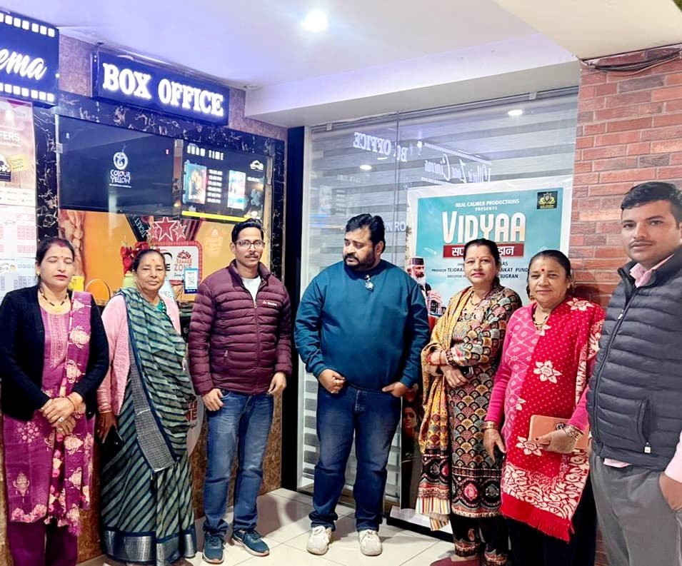 प्रोडक्शन टीम की पूनम चंद्र ने बताया कि फिल्म का प्रदर्शन निरंतर इस समय किया जाएगा ताकि अधिक से अधिक दर्शक इसका लाभ उठा सकें।उत्तराखंड फिल्म विकास परिषद के पूर्व सदस्य और रियल कैलिबर प्रोडक्शन के फाउंडर सदस्य विक्की योगी ने इस अवसर पर कहा कि यह फिल्म युवा फिल्म निर्माता तेजोराज पटवाल द्वारा निर्मित है, जिसका निर्देशन संजीव दास ने किया है। फिल्म के एग्जीक्यूटिव प्रोड्यूसर सुदीप जुगरान (डॉनी) हैं। ‘विद्या’ में मुंबई, बॉलीवुड और उत्तराखंड के कई प्रतिभाशाली कलाकारों ने अपनी अभिनय कला से इसे सजाया है।फिल्म देखने के बाद मुख्य अतिथि ने कहा कि ‘विद्या’ एक शिक्षाप्रद और प्रेरणादायक फिल्म है, जो युवाओं को प्रेरित करेगी। उन्होंने खासकर स्कूल के छात्रों से इस फिल्म को देखने का आग्रह किया ताकि वे भी इसके माध्यम से संघर्ष और सफलता की महत्वपूर्ण सीख ले सकें। कहानी एक छोटी बच्ची की संघर्षपूर्ण यात्रा पर आधारित है, जो उम्मीद और हौसले की मिसाल प्रस्तुत करती है।आज शो में मुख्य रूप से श्रीमती लता गंगोला ,मनीष गंगोला विजय गंगोला, नितिन शाह, कुंदन चौहान ,प्रबंधक दीपक केशव, मूवीजोन के प्रबंध निदेशक योगेश महतोलिया, श्रीमती दीपा दुमका श्रीमती गंगा पांडे, साक्षी बेलवाल, यामिनी जोशी, लोक गायक गिरीश बुग्याल, डिंपी दुमका डेनी सहित कई गणमान्य व्यक्ति मौजूद रहे,